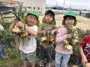 30 4月2026 0 年長組、玉ねぎ掘りしたよ🧅 子ども達の様子 年長きく組さんは先日、陸上競技場までドライブしたくさん遊んできました✨ 寝っ転がってみたり リレーをしたり てんとう虫見つけたよ〜🐞 その後幼稚園に戻り、玉ねぎ掘り🧅 たくさん動いてたくさん収穫して楽しい1日でした💫