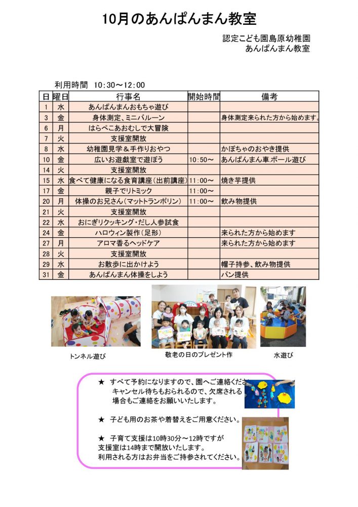 子育て中のお母さん、お父さんの情報交換とふれあいの場として島原幼稚園では親子教室(あんぱんまん教室)を開催しています。