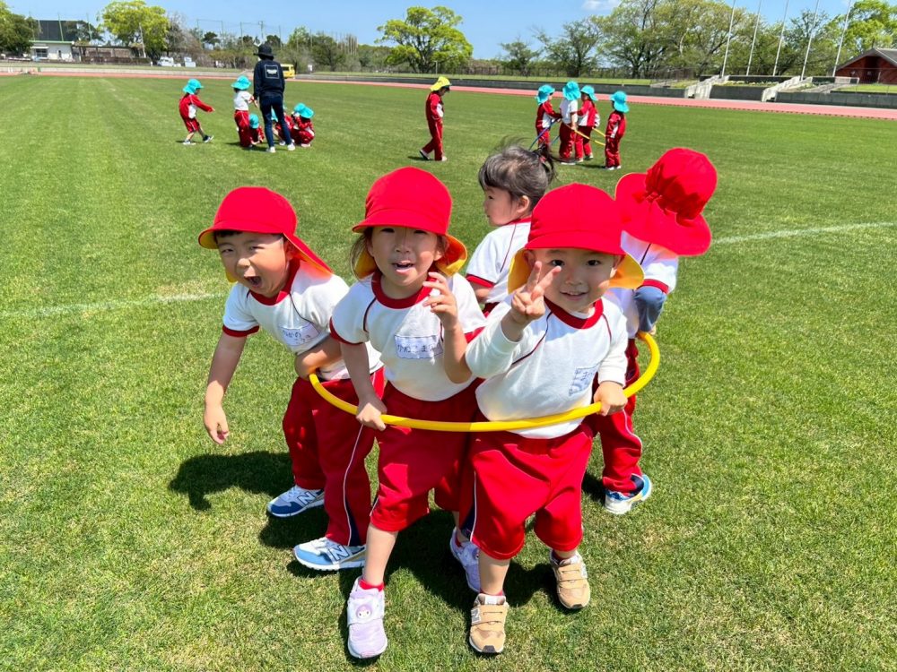 前投稿の年中さんと同日、年少さんも陸上競技場へ行って来たので、その様子をご紹介します😊 広ーい芝生に大喜びのうめ組さん😆 思いっきり走り回りました!!🏃➡️ フープを持っていくと、フープの中に入って汽車ポッポ遊びを楽し […]